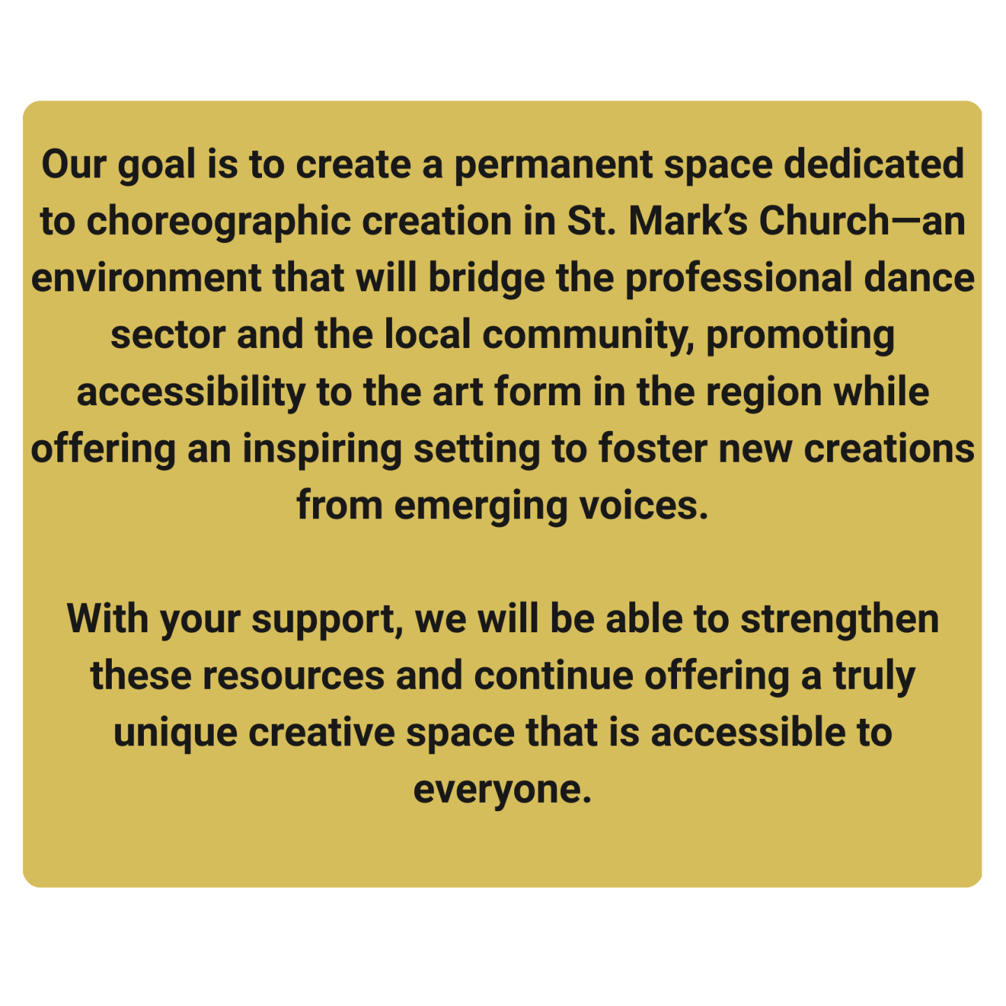 $500: Provides substantial support for renovation and development work on the space, such as window replacement, insulation and heating, and bathroom installation, helping us offer better accommodations to our artistic community and the public.